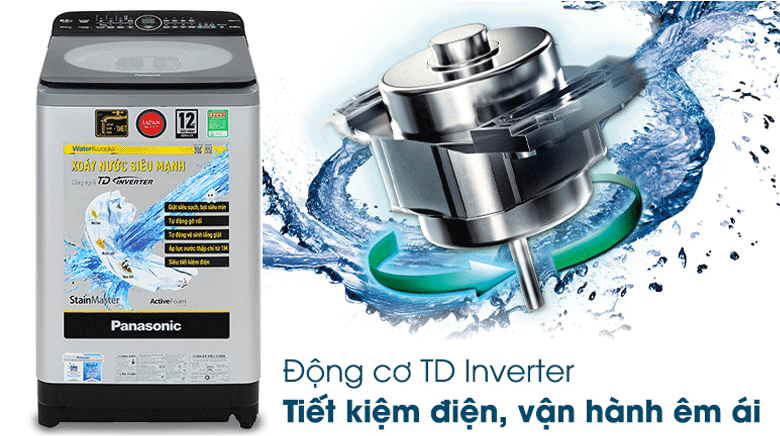 Panasonic mang đến công nghệ TD Inverter giúp bộ truyền động trên máy giặt lồng đứng có khả năng thay đổi tốc độ quay và lực xoắn của động cơ phù hợp với mỗi chu trình giặt.