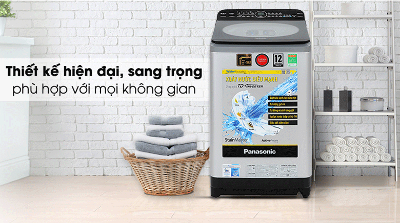 Máy giặt Panasonic có thiết kế phần thân chắc chắn cùng nắp kính chịu lực có thể dễ dàng quan sát lồng giặt sẽ là điểm nhấn hiện đại, sang trọng cho không gian nội thất của gia đình.
